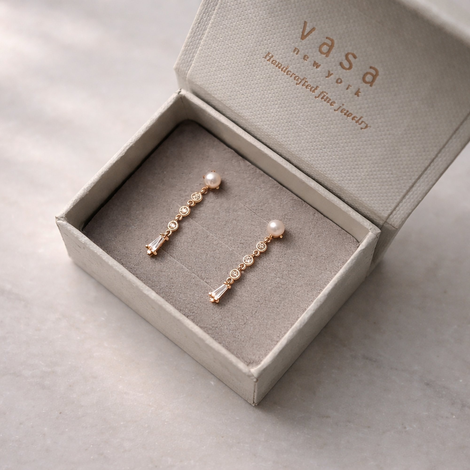 Architectural yet fluid, an elegant drop earring designed to glow gently, never loudly.