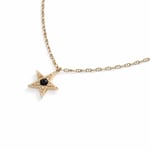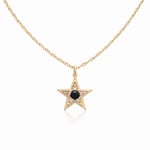 A delicate star-shaped pendant crafted in 14K gold, finished with fine milgrain detailing and centered with a deep black diamond.