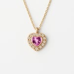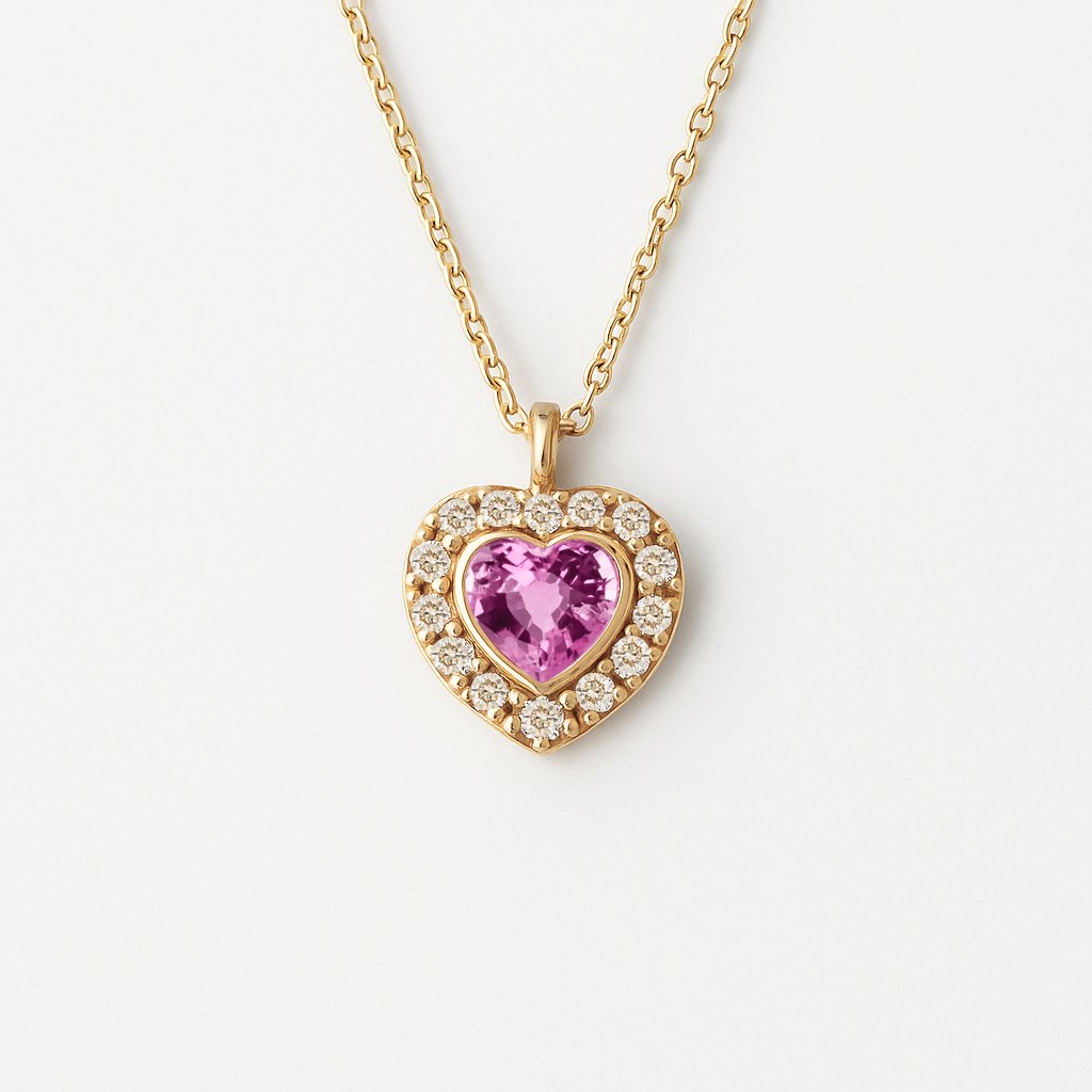 A faceted pink sapphire heart glows softly, framed by a halo of warm champagne diamonds. Echoing the elegance of a bygone era, this necklace weaves timeless beauty with delicate sparkle—an heirloom piece full of grace and sentimental charm.