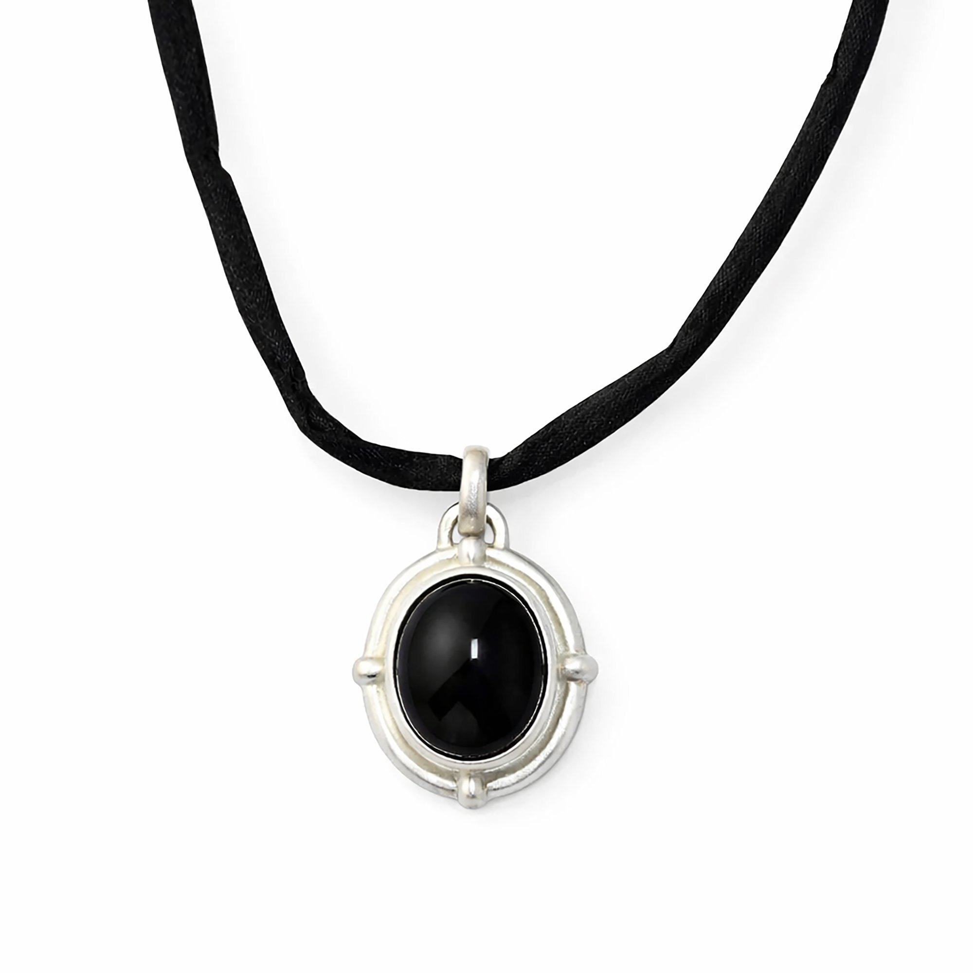 Pure silver meets deep black onyx, strung on a hand-dyed silk cord. Wear it your way—wrapped close as a choker or draped long as a necklace. A balance of simplicity and statement, this piece moves with ease—versatile, understated, and effortlessly chic.