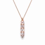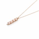 A vertical line of softly glowing morganite, accented with a champagne diamond, evokes the quiet beauty of a winter forest. Set in warm rose gold, the stones catch the light with refined brilliance, creating a delicate yet striking silhouette.